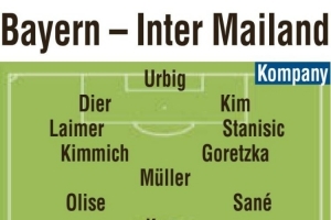 体育资讯4月8日讯 北京时间明天凌晨,拜仁将在欧冠1/4决赛首回合比赛中主场对阵国米。德国媒体《图片报》预测了两队的首发阵容,凯恩、萨内pk劳塔罗、图拉姆。